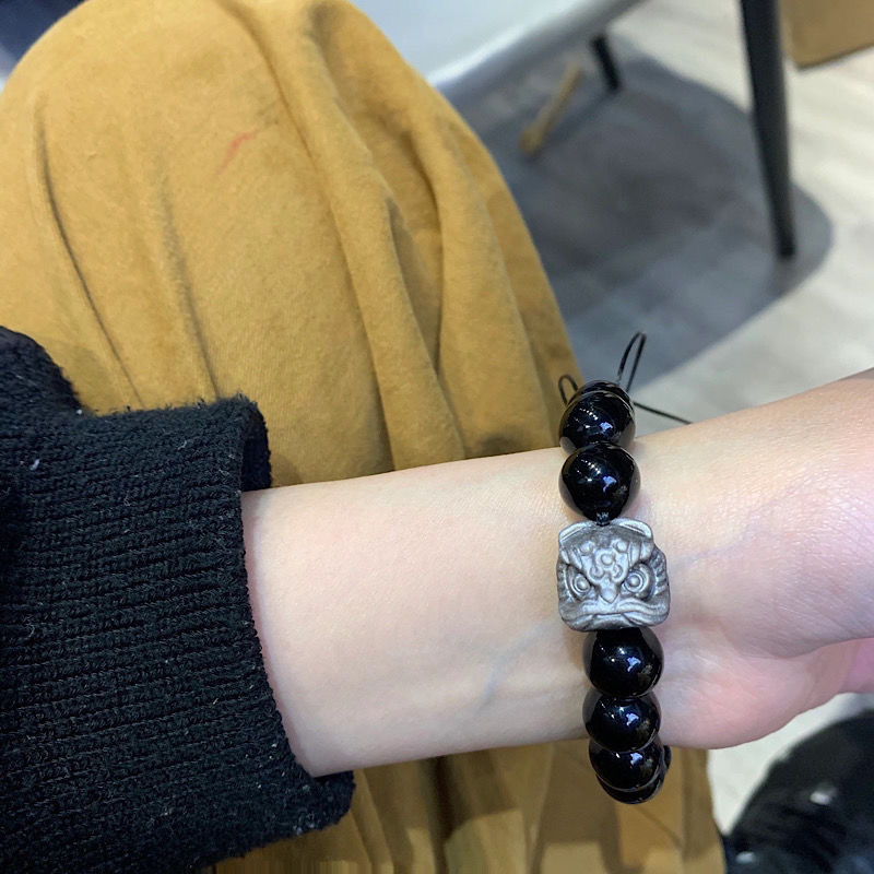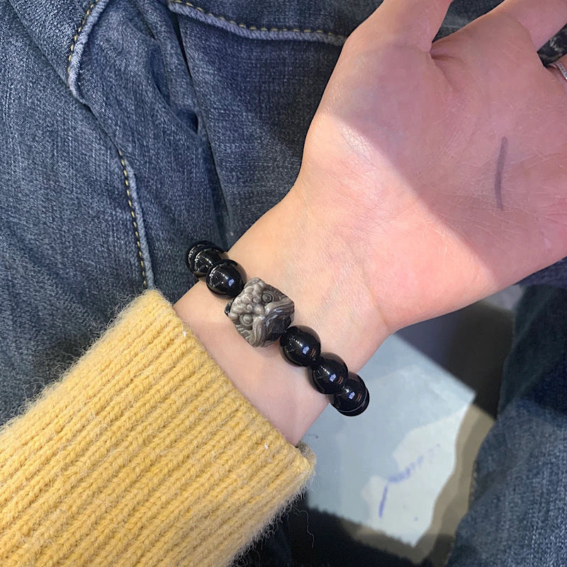Guardian Lion Meditative Wrap | Obsidian-Style Zen Strength Bracelet