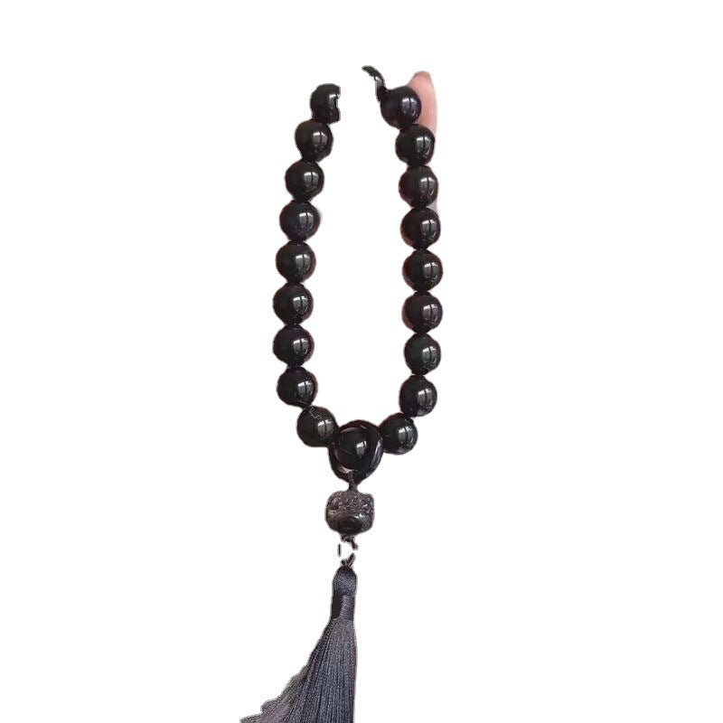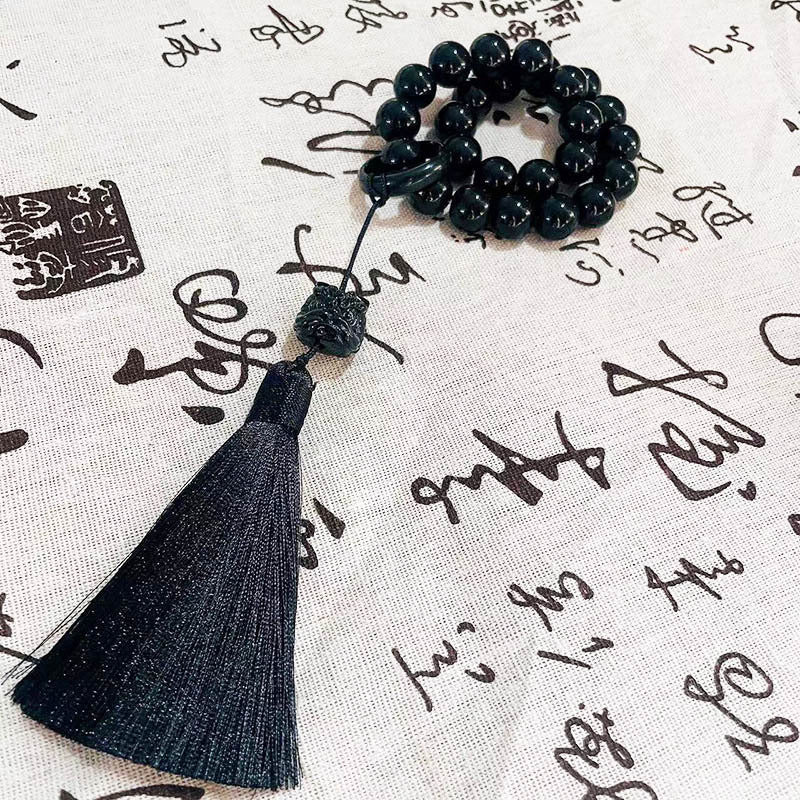 Material: Premium Imitation Obsidian Resin, Handmade Woven Silk Tassel & Polished Charms
