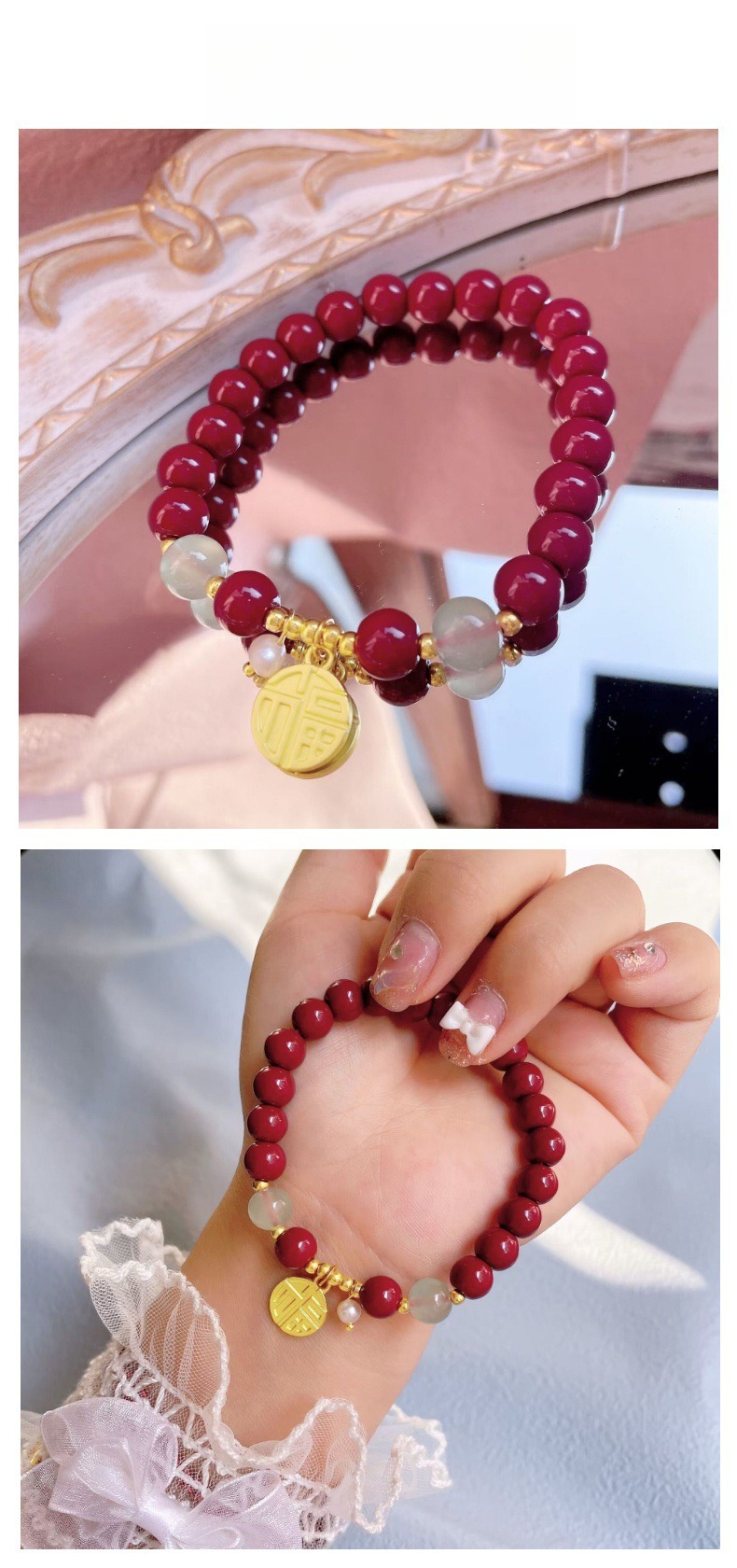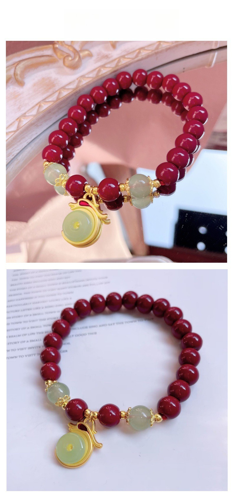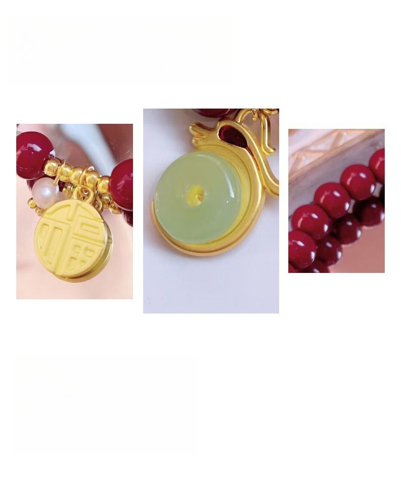 Key Features: High-grade hand-polished cinnabar-style beads, non-tarnish 18K gold-plated hardware, and intricate dragon-scale calligraphy.