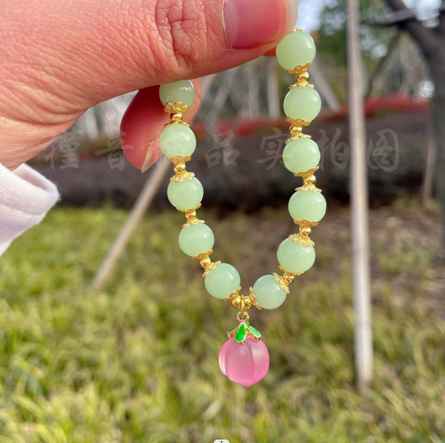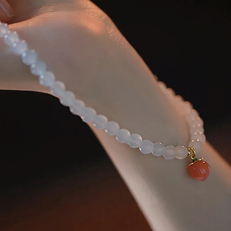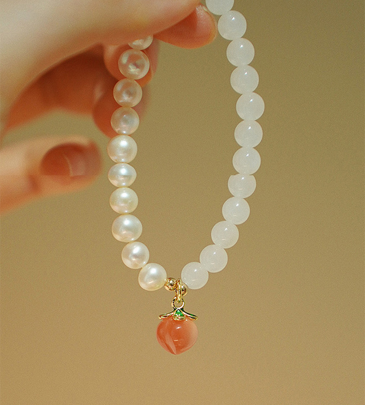 Features a delicate Peach charm, symbolizing longevity, romance, and "sweet love."