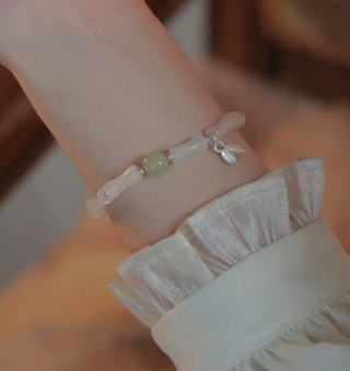 Adorned with a delicate Golden Prosperity Leaf and premium Luminous Glazed Beads, the bracelet captures a "New Chinese Style" aesthetic. The matte gold finish paired with the soft glow of the beads creates a look ofQuiet Luxury that is both professional and poetic.