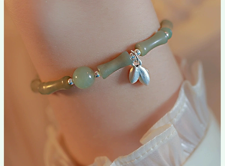 The Golden Ascent | Artisan Jade-Style Bamboo Bracelet with Prosperity Leaf Charm