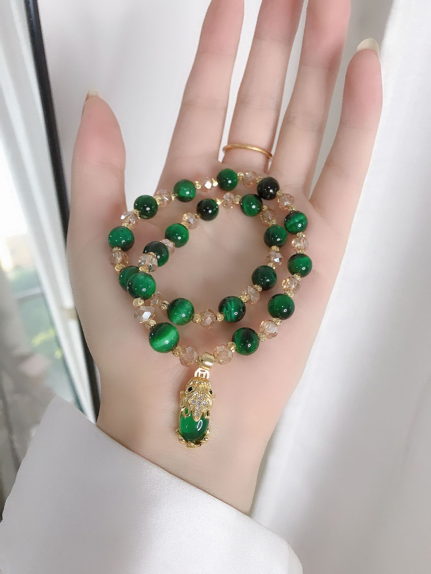 Material: Premium Luminous Cats Eye (Magnetism Stone), Hand-polished Charms & Gold-plated accents